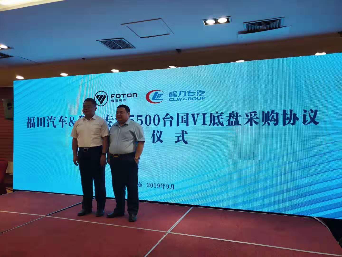 導讀:2019年9月6號.中國.山東諸城。福田汽車與程力專用汽車股份有限公司(程力專汽)戰略合作溝通交流會。福田汽車與程力專用汽車股份有限公司簽約5500臺國六汽車底盤…