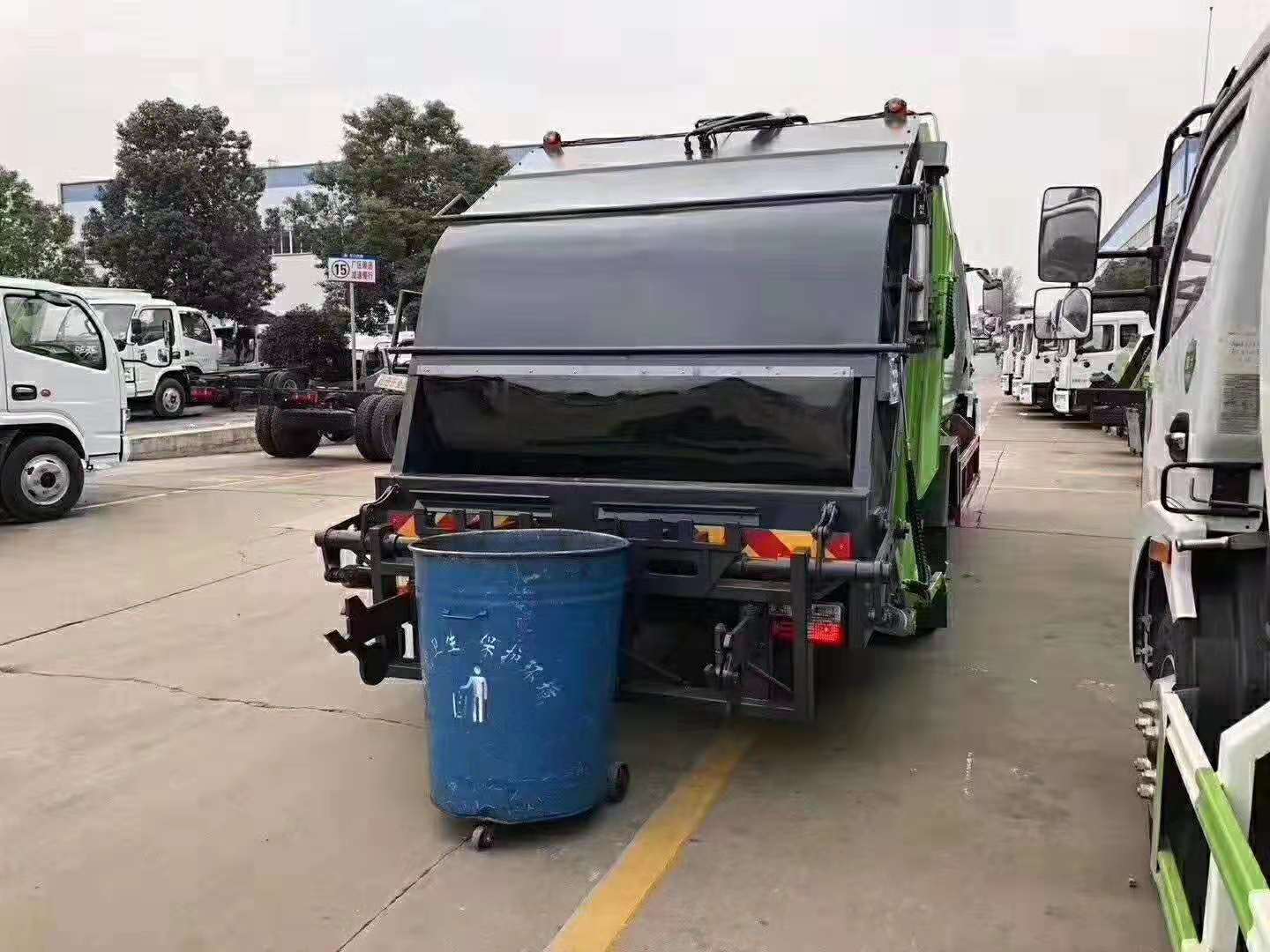 湖北程力 國六東風8方后裝式壓縮垃圾車,多功能掛桶翻轉機構,可掛240升鐵桶,240升塑料桶,660升塑料桶,360升圓鐵桶,氣動密封蓋,雙聯液壓油泵,想怎么用可以根據您的選擇,下面是湖北程力國六壓縮垃圾車幾種常規掛桶型號圖片展示: