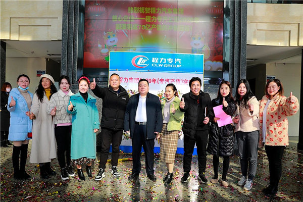 集團公司高層組織在家的主要領導,以及各部門的中層干部及負責人,各直屬廠、專業(yè)廠、集團成員廠總經理,戶主經理與各銷售精英團隊負責人,程力汽車集團簽約網紅共計200余人,在程力總部八號樓迎賓大廳共同見證了超額完成75億專汽產值的祝賀儀式。