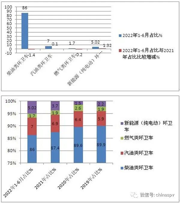 2022年上半年環(huán)衛(wèi)車市場趨勢:湖北程力、福建龍馬、中聯(lián)重科居前三,新能源專用汽車表現(xiàn)搶眼。環(huán)衛(wèi)車屬于商用車行業(yè)中專用車類的一個小眾市場,包括各類垃圾車、灑水車、洗掃車、吸污車等。近年來隨著經(jīng)濟(jì)的發(fā)展與人民生活水平的不斷提高,特別是近期受疫情的影響,人們對環(huán)境衛(wèi)生質(zhì)量的要求越來越高,同時隨著垃圾分類、城鎮(zhèn)化、農(nóng)村環(huán)境整治等利好政策得到有效落地執(zhí)行,將促進(jìn)垃圾車、清掃車等環(huán)衛(wèi)車輛需求呈穩(wěn)定上升趨勢,因此環(huán)衛(wèi)車市場已引起業(yè)內(nèi)的關(guān)注。但由于受疫情影響,今年上半年環(huán)衛(wèi)車市場也遭遇下滑。 根據(jù)終端上牌信息,2022年6月環(huán)衛(wèi)車銷量8629輛,環(huán)比(今年5月環(huán)衛(wèi)車銷量8019輛)增長7.6%,同比(去年6月銷量10385輛,見截圖1)下降16.9%,2022年1-6月環(huán)衛(wèi)車?yán)塾嬩N售44584輛,同比(2021年前6月累計銷售54801輛)下降18.6%,累計降幅比1-5月(1-5月累計同比下降19%)縮窄近0.4個百分點(diǎn)。 截圖1,2021年各月環(huán)衛(wèi)車銷量(數(shù)據(jù)來源:汽車智庫) 按功能用途劃分,2022年6月及前6月,環(huán)衛(wèi)車中垃圾車銷量均為最多,分別銷售3133輛和累計銷售16413輛,占據(jù)環(huán)衛(wèi)車的市場份額分別為36.3%和36.2%;其次是灑水車;再次是吸污車;第四是洗掃車; 在2022年6月及前6月環(huán)衛(wèi)車銷量最大的垃圾車市場中,車廂可卸式垃圾車占比均超半壁江山,領(lǐng)跑垃圾車各細(xì)分車型銷量; 按燃料種類劃分,今年上半年柴油類環(huán)衛(wèi)車仍占主體,但主體地位有減弱趨勢;新能源環(huán)衛(wèi)車?yán)塾嬩N售2240輛,市場占比超5%,且占比比2021年增加1.32個百分點(diǎn),領(lǐng)漲環(huán)衛(wèi)車各細(xì)分市場,表現(xiàn)搶眼,其中新能源自卸式垃圾車?yán)塾嬩N售472輛,領(lǐng)領(lǐng)跑新能源環(huán)衛(wèi)車各細(xì)分車型; 從今年上半年環(huán)衛(wèi)車的區(qū)域市場流向看,湖北、山東、廣東居前三; 從今年上半年企業(yè)具體表現(xiàn)看,湖北程力、長沙中聯(lián)重科、福建龍馬環(huán)衛(wèi)車居前三。 下面對今年上半年環(huán)衛(wèi)車市場特點(diǎn)進(jìn)行解讀。 特點(diǎn)一:按功能用途劃分,各類垃圾車銷量占比超三之一,居榜首 表1,2022年6月及1-6月各類環(huán)衛(wèi)車銷量同比、占比及占比同比增減(數(shù)據(jù)來源:汽車智庫及終端上牌信息) 2022年上半年環(huán)衛(wèi)車市場趨勢:湖北程力、福建龍馬、中聯(lián)重科居前三,新能源專用汽車表現(xiàn)搶眼。 ---各類環(huán)衛(wèi)車單月和累計分別銷售3133輛和16143輛,占比分別為36.3%和36.2%,均超環(huán)衛(wèi)車整體市場的三分之一份額,均居第一,說明垃圾車是環(huán)衛(wèi)車中需求最多的細(xì)分車型; ---灑水車單月和累計分別銷售2261輛和11742輛,占比分別是26.2%和26.3%,均居第二; ---吸污車單月和累計分別銷售1950輛和10161輛,占比分別為22.6%和22.8%,居第三; ---清掃車單月和累計銷量分別為1285輛和6538輛,占比分別為14.89%和14.67%,居第四,是環(huán)衛(wèi)車中占比相對較小的細(xì)分車型。 總之,無論是今年6月還是今年上半年,垃圾車占比均超三分之一,成為環(huán)衛(wèi)車中占比最高、最受市場青睞的細(xì)分車型。 特點(diǎn)二:車廂可卸式垃圾車占比超半壁江山,領(lǐng)跑垃圾車市場 表2,根據(jù)終端上牌信息,2022年6月及前6月各類垃圾車銷量、占比統(tǒng)計: 上表可見,2022年6月及1-6月各類垃圾車銷量及占比呈現(xiàn)以下特點(diǎn): ---車廂可自卸式垃圾車單月及累計銷量分別為1660輛和8158輛,占比分別為50.1%和50.5%,占比均超半壁江山,均居第一,領(lǐng)跑各類垃圾車市場,說明車廂可卸式垃圾車最受垃圾車市場歡迎; ---壓縮式垃圾車單月和累計銷量分別為1098輛和5688輛,占比分別為35.1%和35.2%,均居第二; ---密封式垃圾車和拉臂式垃圾車無論是單月和累計銷量占比均很小; ---其他垃圾車單月和累計銷量分別為395輛和2005輛,主要包括各種倉廚垃圾車、掛桶式垃圾車等,占比分別為12.6%和12.5%。 特點(diǎn)三:新能源環(huán)衛(wèi)車占比增加最多,表現(xiàn)搶眼 截圖2,2019年—2021年各類動力環(huán)衛(wèi)車銷量占比(來源:汽車智庫平臺) 表3,根據(jù)終端上牌及汽車智庫平臺數(shù)據(jù),按動力燃料種類劃分,2022年上半年各類環(huán)衛(wèi)車銷量及占比統(tǒng)計: 上圖表可見,按動力中了劃分,在今年上半年的環(huán)衛(wèi)車銷量結(jié)構(gòu)中: ---柴油類環(huán)衛(wèi)車?yán)塾嬩N售38342輛,占比86%,仍然占據(jù)絕對的霸主地位,但占比與2021年比減少1.4個百分點(diǎn),與2020年、2019年比減少更多,可見近年來柴油動力環(huán)衛(wèi)車占比有逐年減少的趨勢; ---汽油動力環(huán)衛(wèi)車占比7%,居第二,且與近年比有微弱增長的跡象; ---新能源環(huán)衛(wèi)車(幾乎都是純電動類)累計銷售2240輛,占比5.02%,與2021年比占比增加1.32個百分點(diǎn),是占比增加最多的細(xì)分車型,與2020年和2019年比增加更多,說明目前新能源環(huán)衛(wèi)車增長的勢頭最為強(qiáng)勁。這主要得益于國家雙碳戰(zhàn)略的持續(xù)發(fā)力。 表4,另外根據(jù)終端上牌信息,2022年上半年新能源環(huán)衛(wèi)車最暢銷的top5車型: 上表