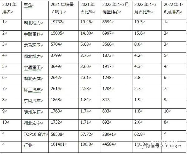 2022年上半年環(huán)衛(wèi)車市場趨勢:湖北程力、福建龍馬、中聯(lián)重科居前三,新能源專用汽車表現(xiàn)搶眼