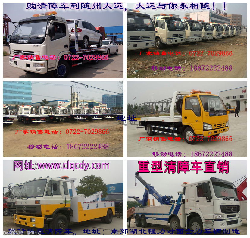 熱銷產品:清障車,東風多利卡清障車多利卡一拖二清障車一拖二清障車道路清障車平板運輸車,混凝土攪拌車,隨車吊,垃圾車,油罐車,灑水車
