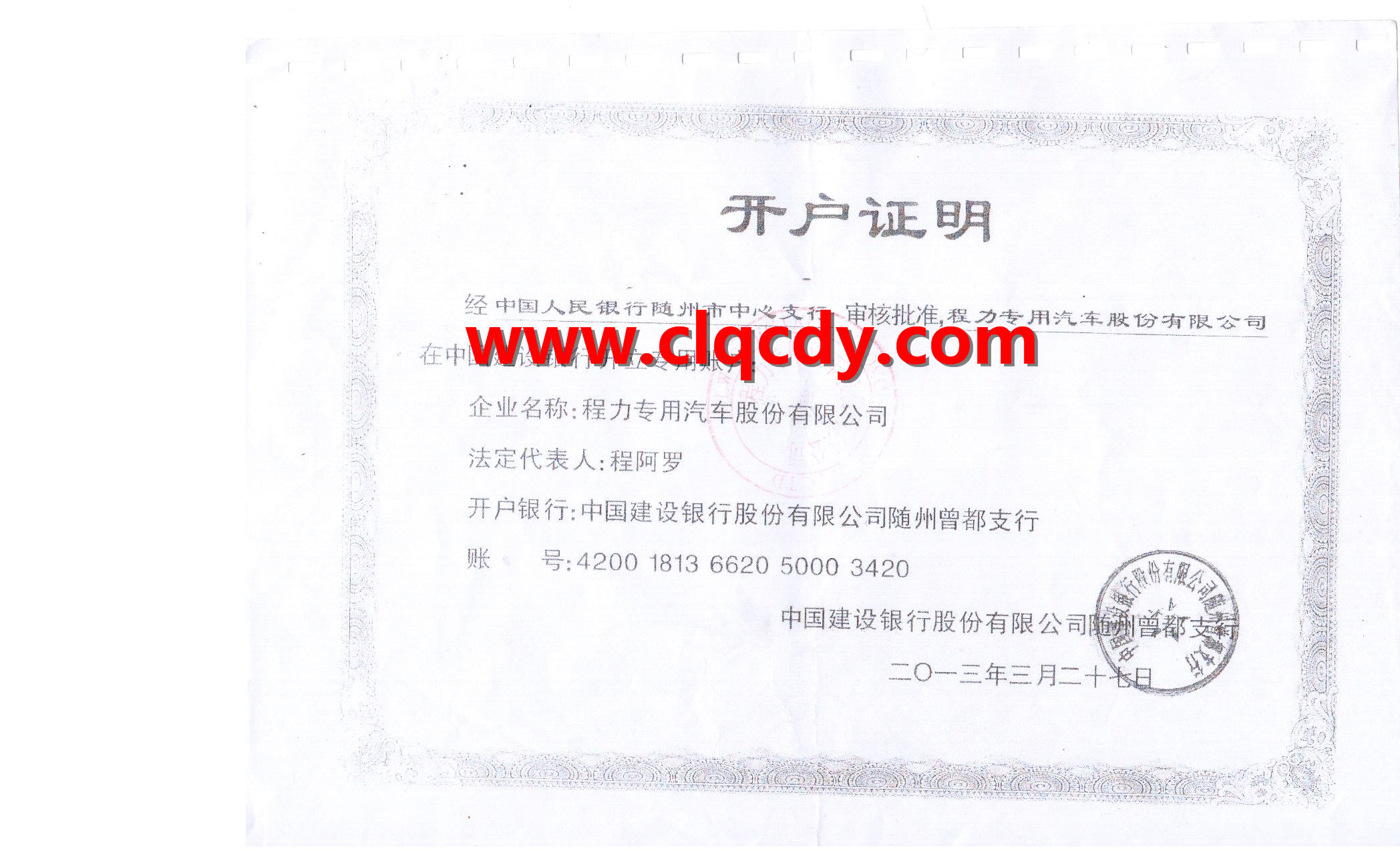 湖北程力營(yíng)業(yè)執(zhí)照、組織機(jī)構(gòu)代碼、稅務(wù)登記證、開戶證明。 |