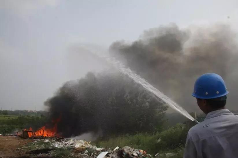 收到指令后,隊員沖向火源位置,接住后方拋來消防水帶,快速連接水帶接扣,隊員們反應迅速,配合默契,待水槍頭送至火源前方,水柱噴灑而出,火勢瞬間得到控制,幾分鐘后將火撲滅。隨后,兩名隊員示范使用手提式干粉滅火器撲滅油料起火,消防隊員們迅速出擊,技巧嫻熟,應對險情毫不慌亂,隨著濃煙散盡,演習取得圓滿成功。