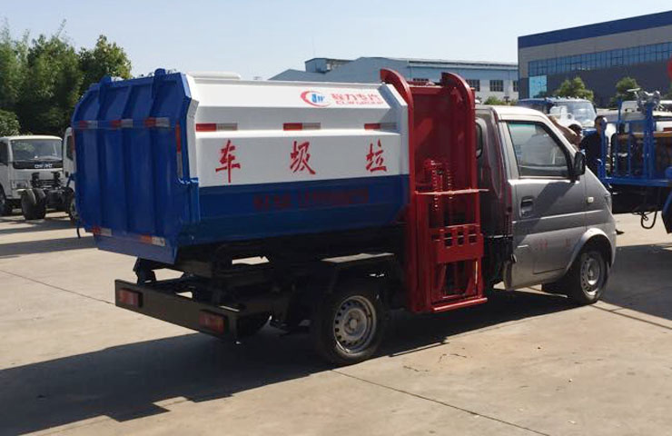 東風小康3方掛桶垃圾車東風小康3方自裝卸式垃圾車有效裝載容積3立方,箱體采用邊三底四碳鋼板制作,箱體前部側面帶有掛桶提升機構,可自動舉升垃圾桶倒入垃圾,帶自卸功能,尾部裝有橡膠密封條,防污水滴漏,掛桶垃圾車可根據客戶要求搭配120升或240升塑料桶和鐵桶。