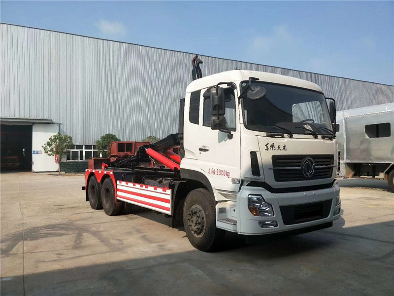 東風天龍底盤,康明斯290馬力發動機,陜齒9檔變速箱,伸縮臂,鉤起能力20T,帶后滾輪支撐,進口柱塞油泵,進口平衡閥,駕駛室內外兩種操作方式,帶防誤操作系統。配備移動壓縮站有效容積18立方,邊4底5,進口電磁換向閥,進口油泵,西門子PLC,西門子7.5kw電機,可外接380V電源。 湖北程力汽車18方20噸勾臂垃圾車程力威牌CLW5250ZXXD6型車廂可卸式垃圾車公告參數: |