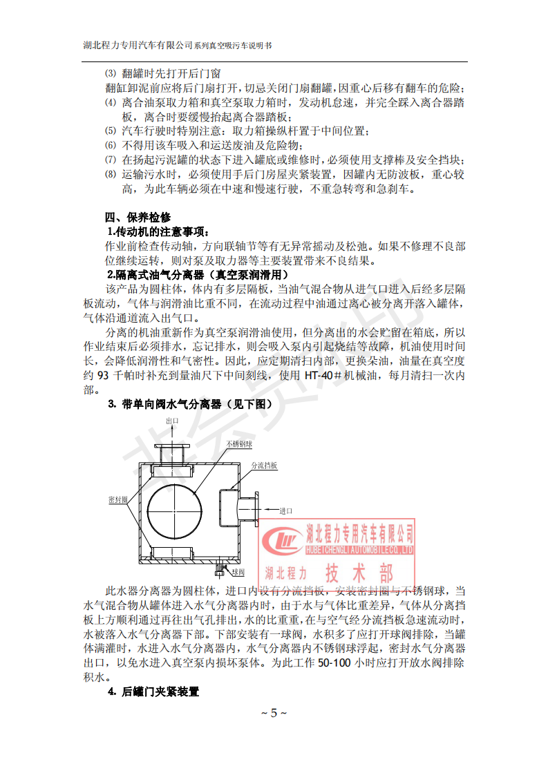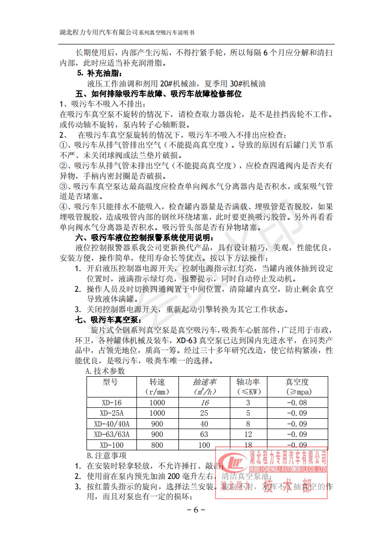 湖北程力環衛吸糞吸污車使用說明書(吸污車如何操作和注意事項)