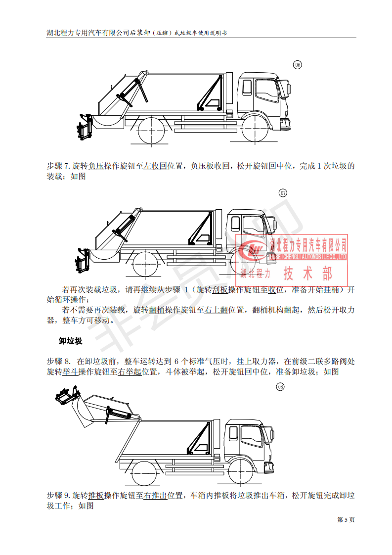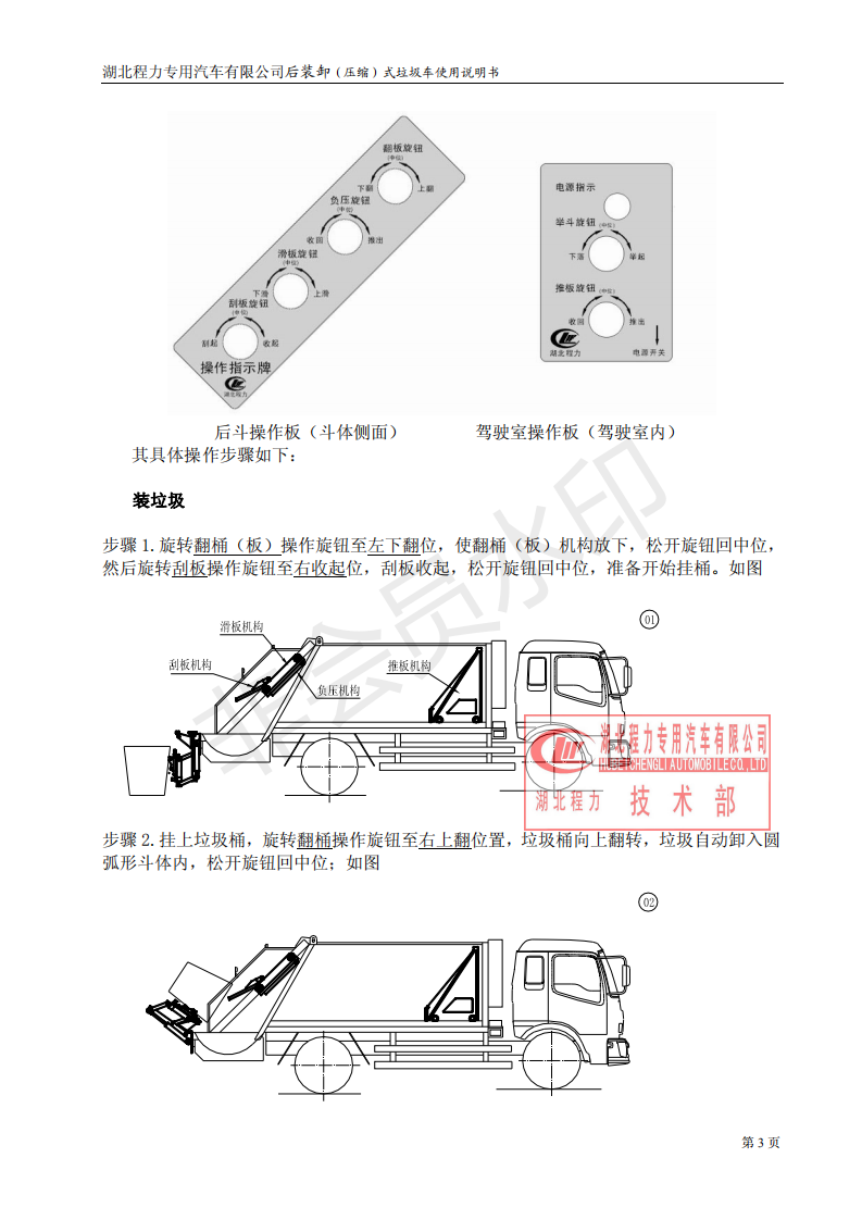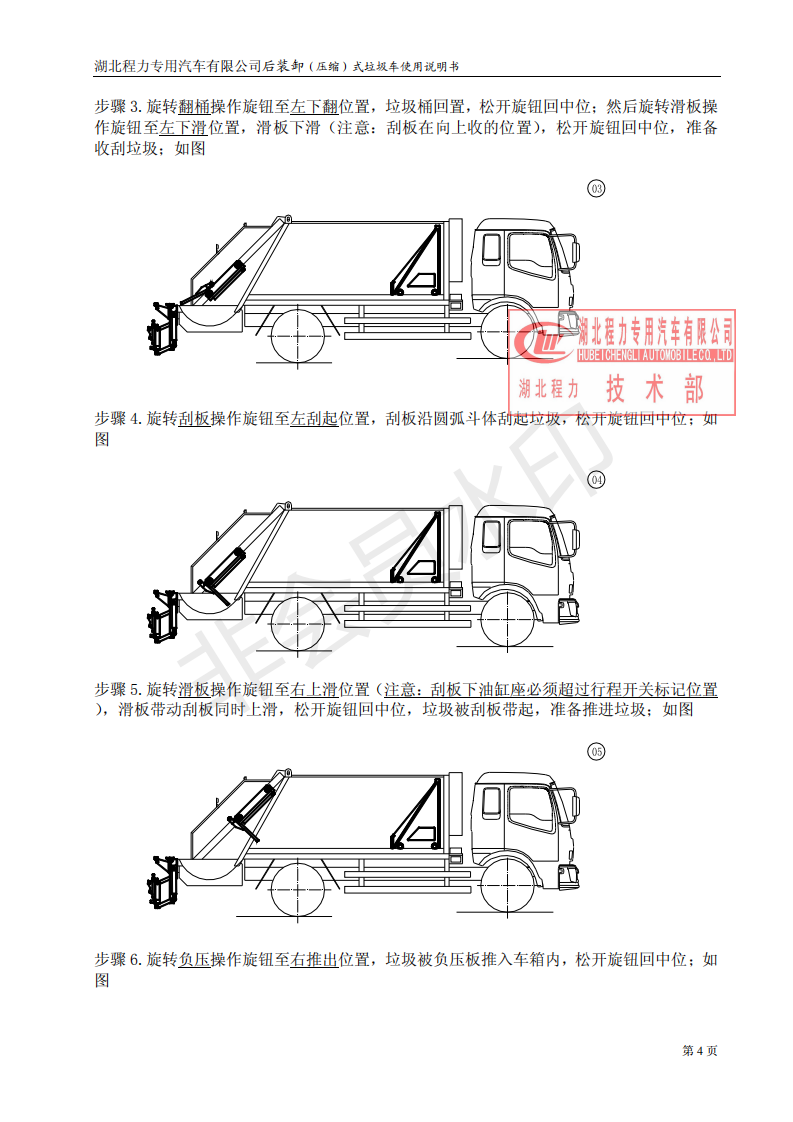 湖北程力壓縮垃圾車如何操作使用說明書