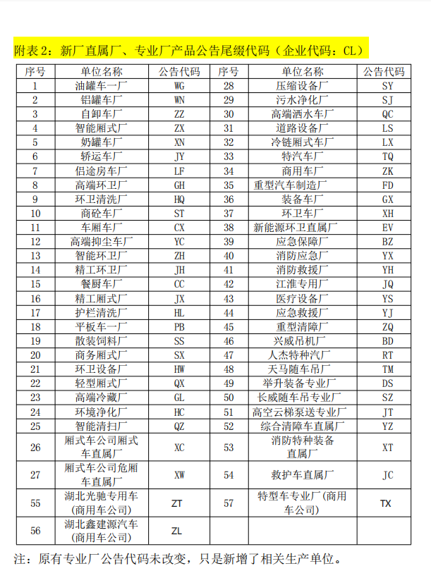 程力重工產(chǎn)品公告尾綴代碼(企業(yè)代碼:CLH),程力集團成員廠產(chǎn)品公告尾綴代碼(企業(yè)代碼:CLW)