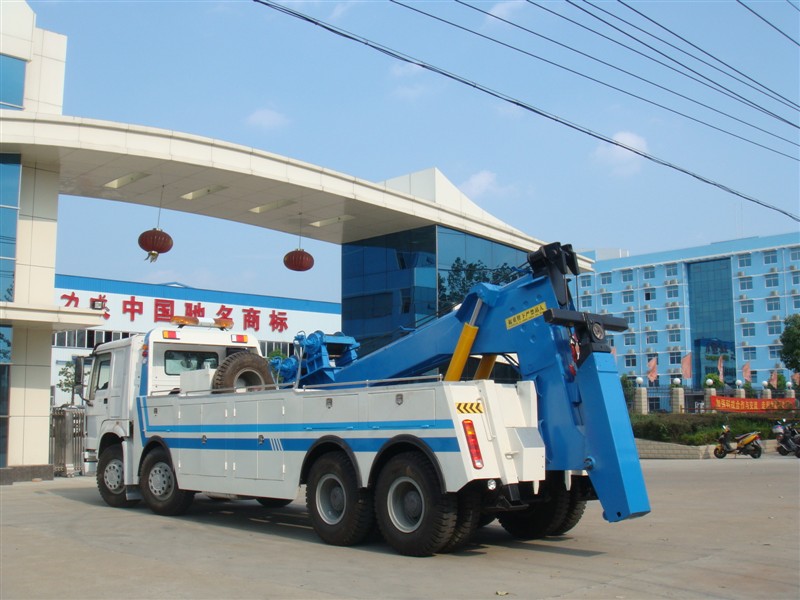 二節六邊型吊臂,三節托臂(連桿、雙鉸點型),分體式車廂,雙側聯動操作裝置,搖控操作裝置一套,前保險扛有配重,后工作燈3只,2個150KN液壓絞盤(55米鋼絲繩),1個洗手箱,U型抱胎裝置1套,托叉5對,托叉座1對,鏈鉤2條,1個長排工程警燈(LED),輔助燈總成1套,輔助制動氣管總成1套。
