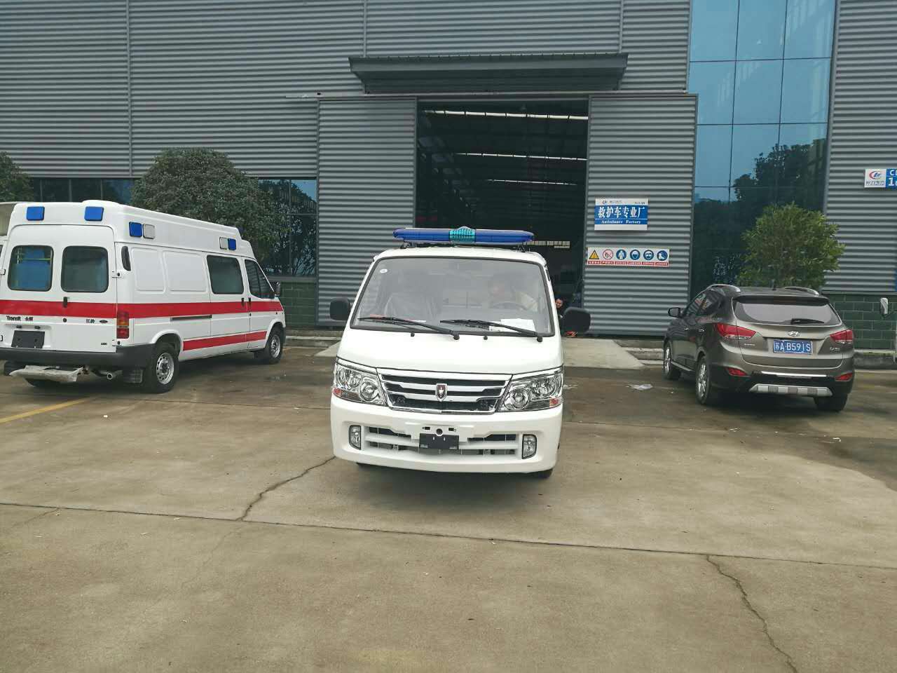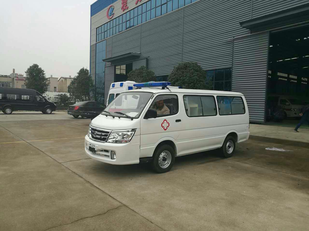 國5救護車(金杯轉運型救護車)SY5033XJH-D3S1BH(國五汽油機),功率:73.5kW,軸距:2590mm,輪胎型號:185R14,發動機型號:4G19,排量:2.0,帶前后空調,電動門窗,方向助力,后醫療艙配置(自動上車擔架,氧氣瓶5L,耐減,防滑,)
