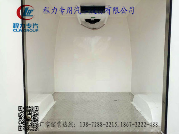 3.上裝配置:冷藏廂體內(nèi)部有效尺寸:長2.1米×寬1.58米×高1.48米,廂體蒙皮采用內(nèi)外玻璃鋼,模具一次成型,8cm厚聚氨酯發(fā)泡保溫層,不銹鋼包角,不銹鋼門框,不銹鋼門鎖件,花紋鋁底板,配后雙開門,可以選開側(cè)門,-5~-18度制冷機(jī)組可選?梢园惭b溫濕度記錄報(bào)警儀,內(nèi)部通風(fēng)槽,雙溫制冷機(jī)組等藥品冷藏車專用設(shè)施。