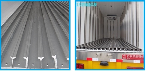 通風(fēng)系統(tǒng):底板通風(fēng)槽、廂內(nèi)四周通風(fēng)隔板。 增強(qiáng)制冷機(jī)的冷風(fēng)循環(huán)效果,安裝通風(fēng)槽后貨物不會(huì)緊貼廂體側(cè)壁與廂底,通風(fēng)槽材質(zhì)為鋁合金型材,結(jié)構(gòu)簡(jiǎn)單易清潔。運(yùn)輸肉類或者藥品物品、箱體物品,需要加裝通風(fēng)槽,防止變質(zhì)。 |