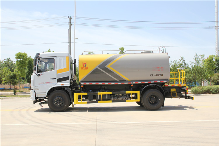 采用大流量水泵60-90,基本灑水功能前沖、后灑、側噴、工作平臺帶高炮(可調節成霧狀、直柱狀)、可泵進泵出、罐體兩側炮筒、帶兩根抽水軟管,上裝標配,罐體自動焊,大梁不動焊